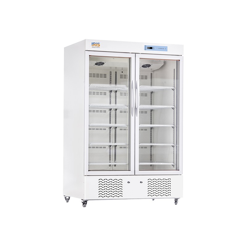 Double Door Medical Refrigerator 2 to 20°C IUMR-2700D with dual-layer opening and 10 shelves for easy observation and storage of samples. The IUMR-2000D comes with the same design and features as IUMR-1000 having double doors instead
