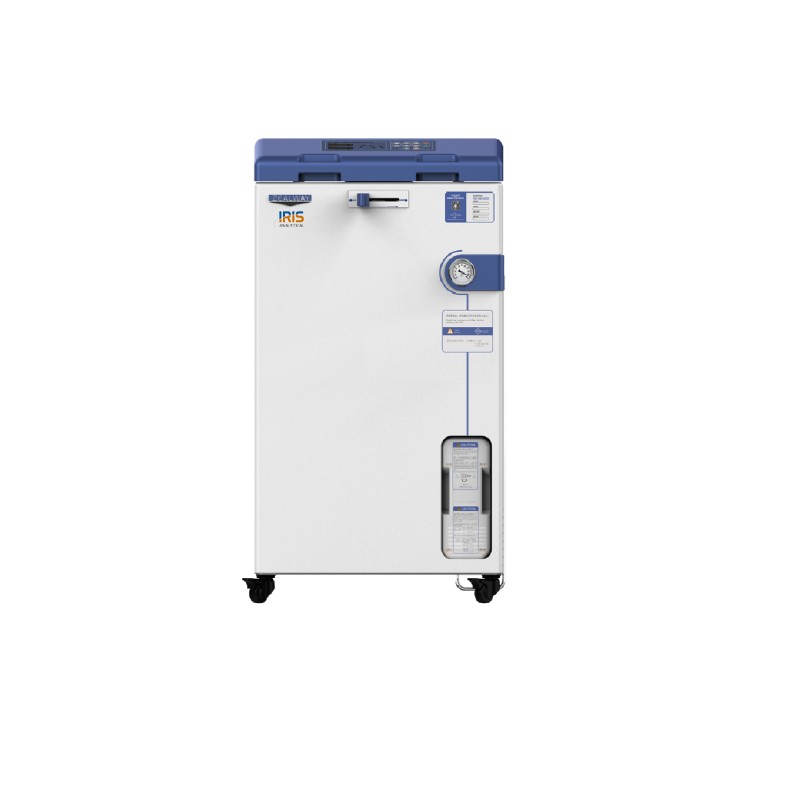 Vertical Autoclave/Steam sterilizers IVA-2200 are floor standing self-contained sterilizer units that require no plumbing and operate from a standard single-phase power supply. Equipped with an effective air-cooling system for liquid sterilisation. This speeds cooling time by up to 40% compared to standard models. The Iris Vertical Autoclaves are available in 60 liters, chamber capacity. All are built with castor wheels as standard making them easy to move.